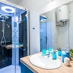 Några rum har plattskärms-TV med satellitkanaler, mathörna och strykutrustning. Lägenheten består av 7 rum. Dusch, handdukar och hårtork finns i badrummet.